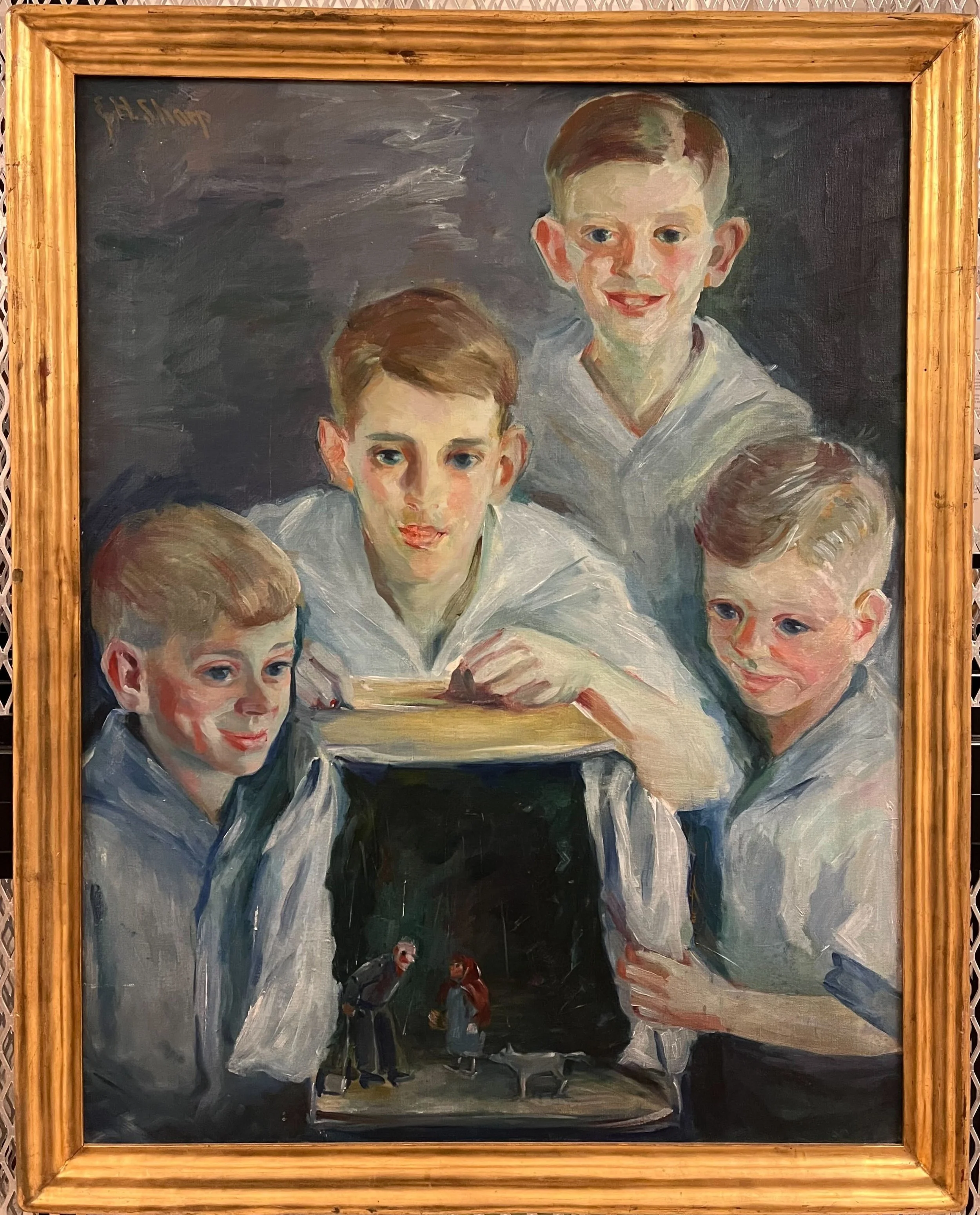 Clay and Helen Ball had four sons between 1917 and 1924. All four sons would establish successful careers in law, medicine, and engineering. Seen here is a portrait of these Ball brothers painted by local artist Everett Hill Sharp in 1929. This painting was donated to Minnetrista in 2022 by Thomas Ball, son of Philip and grandson of Clay.