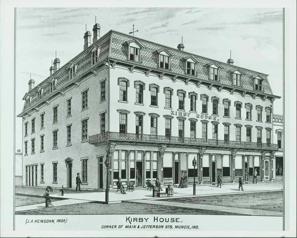 At the end of the 19th century, the push was on to make the Kirby House the biggest, the best and the most modern hotel in Muncie. In 1891, the mansard roof disappeared when owner, Julius Heinsohn, added another story, bringing the total to four. Two years later it was new fixtures and furniture.
